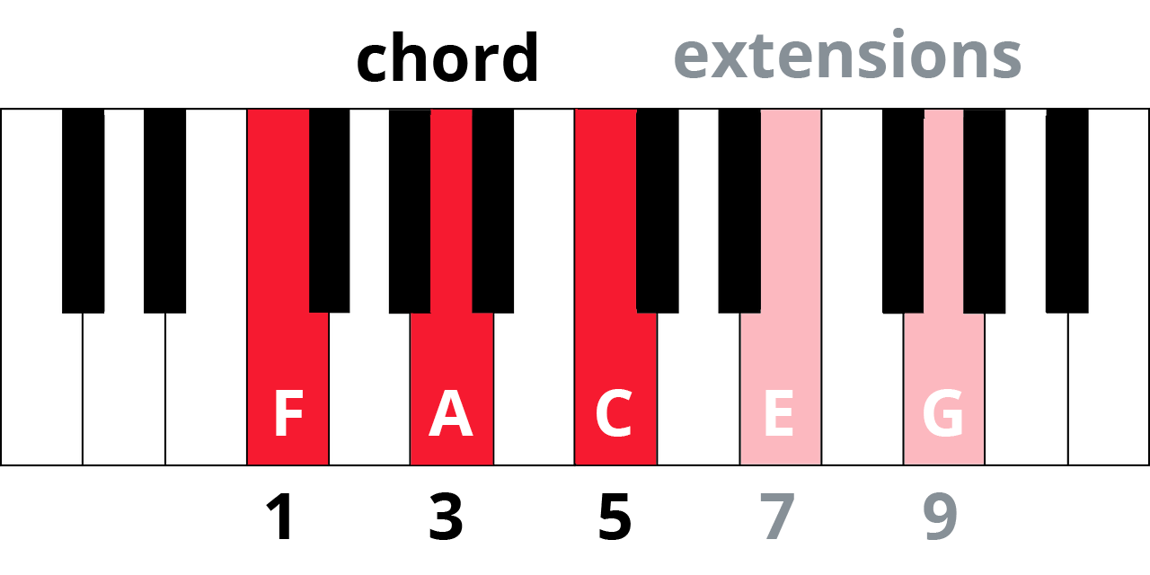 For example, this is an F chord with extensions: