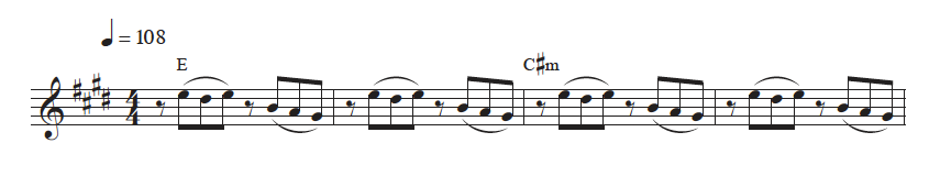 Because this is a pop song remember. So we also only have 4 chords. The chords you’ll need are E major, C# minor, B major and A major.