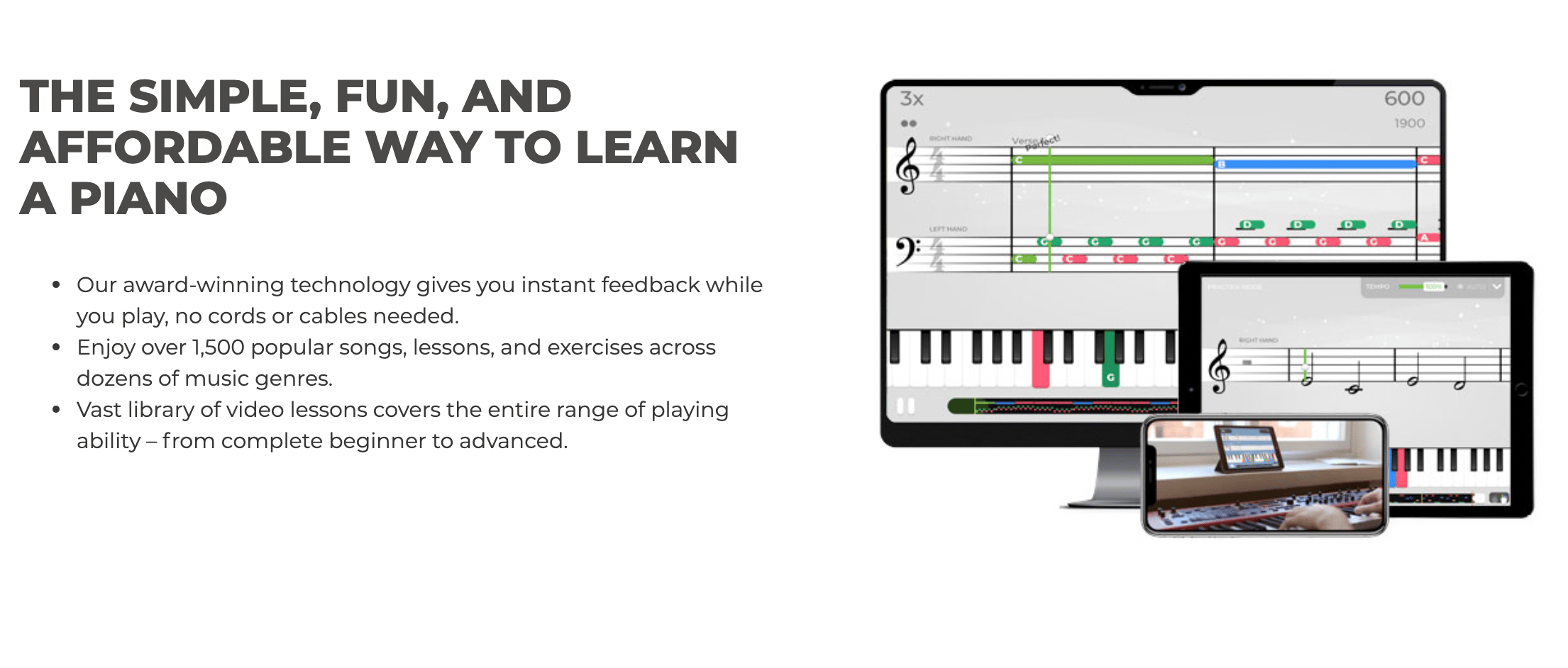 While it’s amazing that we’ve reached a point where our phones can tell us how good our piano playing is, the technology is still in its infancy and it’s yet to be able to read the more complex aspects of your playing, like rhythms and technique.