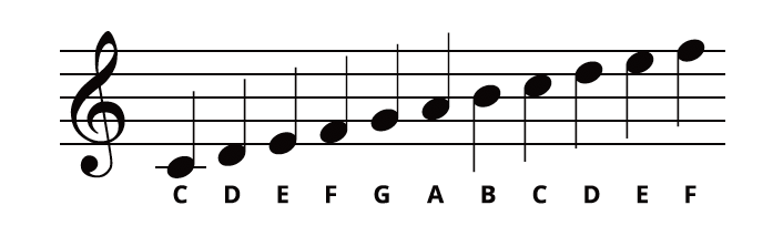 And if we keep going beyond the lines on the staff, we get notes that look like this: