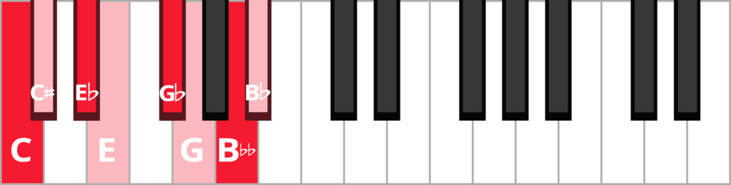 C Half-Whole Diminished Scale Notes: C-C♯-E♭-E-G♭-G-B♭♭-B♭